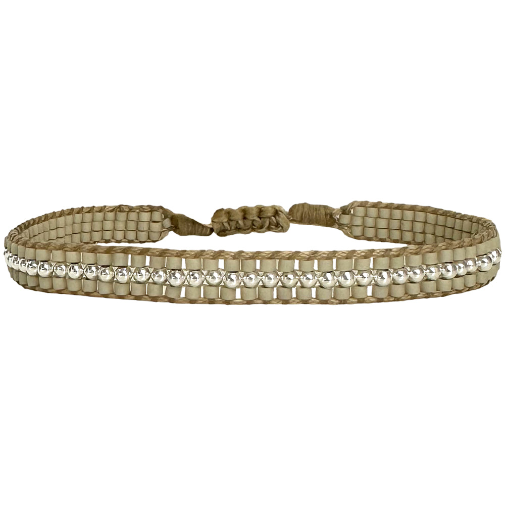 Pulsera Ava Hecha a Mano en Beige y Cuentas de Plata de Ley