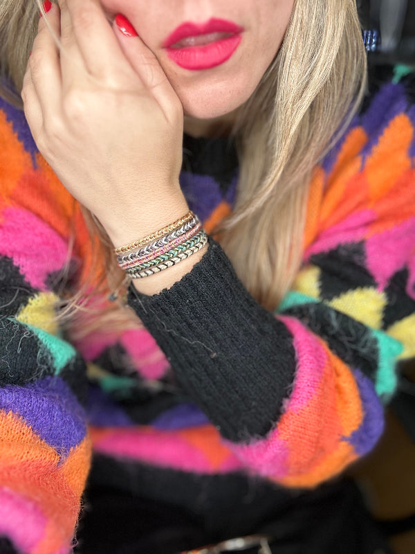 Mejora tu juego de accesorios con nuestra pulsera trenzada metálica, hecha a mano con hilos metálicos vibrantes en una impresionante variedad de tonos. Cada pieza presenta una combinación única, lo que te permite mostrar las combinaciones más geniales que reflejan tu estilo individual. Esta llamativa pulsera es perfecta para agregar un toque de estilo moderno a cualquier atuendo, lo que la convierte en un artículo imprescindible para las amantes de la moda.